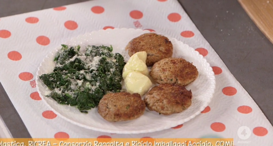 Serviamo le polpette con gli spinaci e le accompagniamo a della maionese.