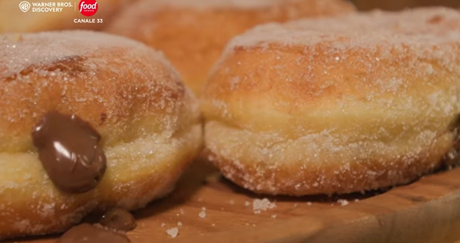 Nella puntata di oggi della nuova serie di Food Network Nel forno di casa tua, dedicata all’arte della panificazione, Fulvio Marino, mugnaio ed esperto panificatore, ha preparato uno dei suoi imperdibili lievitati, rivelando la ‘sua‘ ricetta dei bomboloni fritti. Di seguito gli ingredienti necessari ed il procedimento.