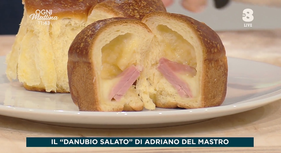 danubio salatoIl panettiere Adriano Del Maestro, protagonista dello spazio dedicato alla cucina, all’interno del programma condotto da Adriana Volpe su Tv8, Ogni Mattina, ha preparato il danubio salato. Di seguito ingredienti e procedimento.