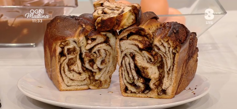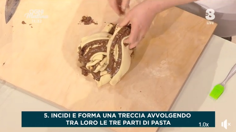 Il panettiere Adriano Del Maestro, protagonista dello spazio dedicato alla cucina, all’interno del programma condotto da Adriana Volpe su Tv8, Ogni Mattina, ha preparato la treccia dolce alla crema di nocciole. Di seguito ingredienti e procedimento.