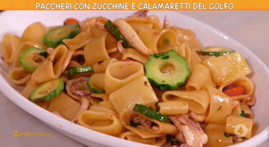 La cuoca casalinga Anna Moroni, all’interno della puntata odierna di Ricette all’italiana, il programma di Rete4 condotto da Davide Mengacci, in onda dal lunedì al sabato prima e dopo il Tg4, ha preparato i paccheri con zucchine e calamaretti.