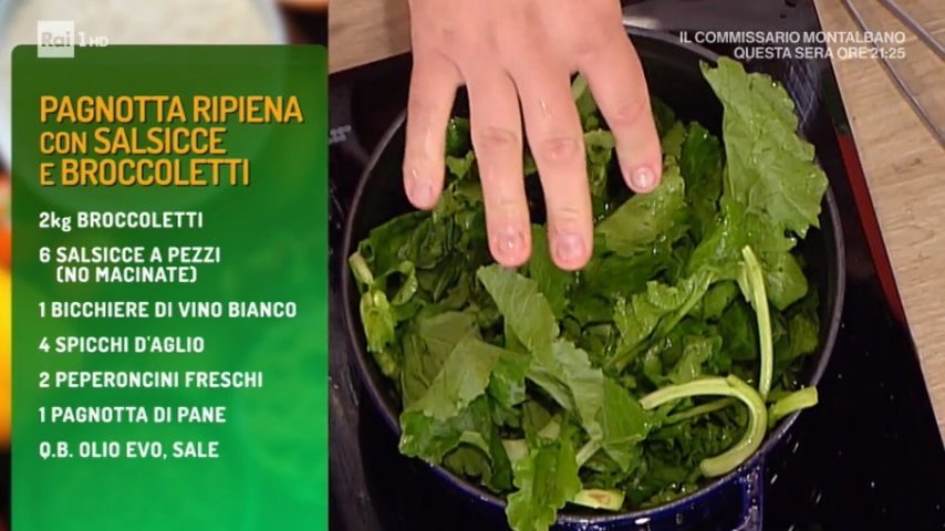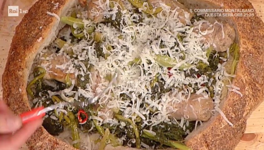 A sfidare l’inossidabile due Spisni – Isoardi, c’è l’improbabile coppia composta da Claudio Lippi e dal pizzaiolo romano Marco Rufini. Oggi, però, niente pizza, ma un secondo piatto tipicamente romano servito in una maniera originale. Ecco la pagnotta ripiena con salsicce e broccoletti.