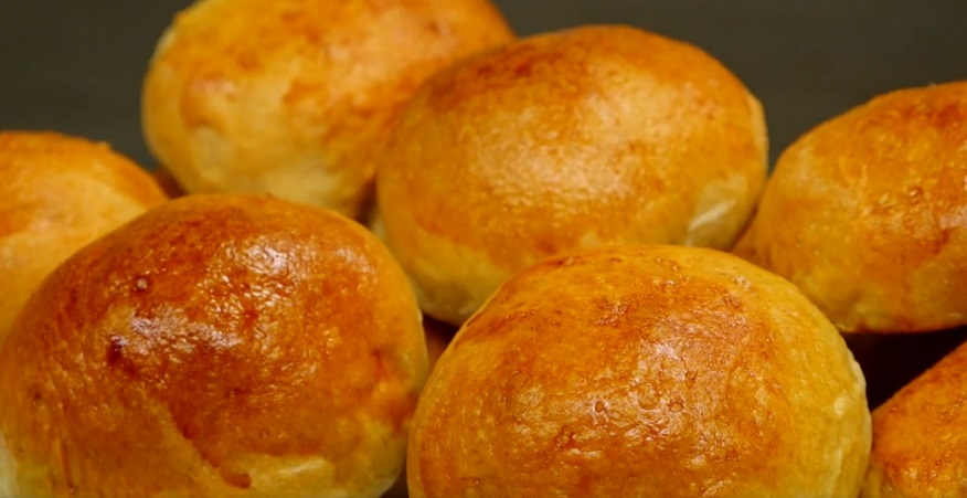 Trasferiamo l’impasto nuovamente sul piano, quindi lo allarghiamo leggermente, in modo da formare un rettangolo. Arrotoliamo quest’ultimo su se stesso, in modo da ottenere un salsicciotto. Tagliamo in panetti da 45 g ciascuno (circa). Prendiamo ogni panetto e lo roteiamo sul banco con il palmo della mano, dando la forma di una sfera liscia. Disponiamo sulla teglia del forno e lasciamo lievitare ancora un’ora, coprendo con un panno o con pellicola. Spennelliamo i panini lievitati con dell’albume sbattuto. All’interno del forno, mettiamo una ciotolina (da forno) piena d’acqua. Preriscaldiamo a 180° ed inforniamo i panini. Lasciamo cuocere 12-15 minuti.