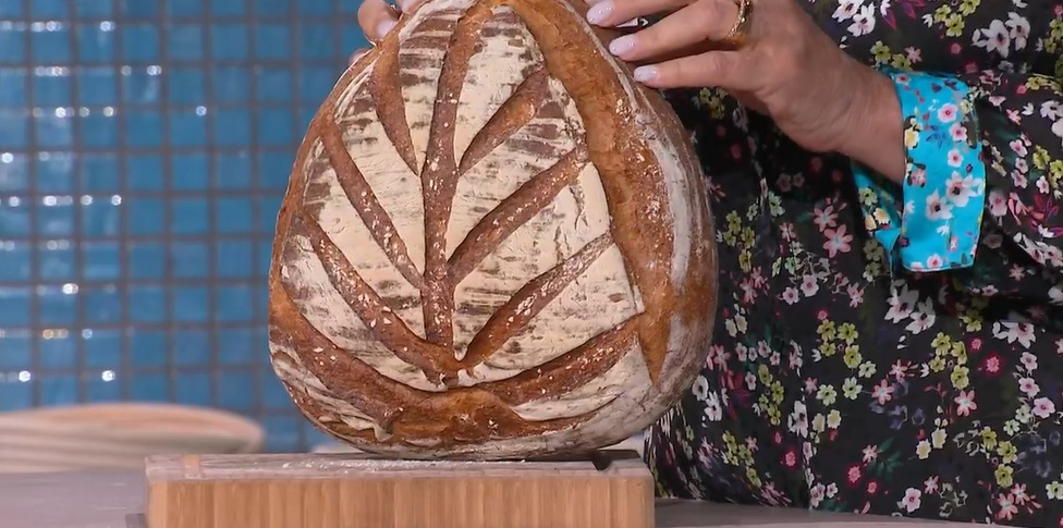 Capovolgiamo la pagnotta sulla teglia infarinata e pratichiamo delle incisioni con una lametta. Cuociamo in forno caldo e statico a 250° per 15 minuti, quindi abbassiamo a 230° per altri 60 minuti.
