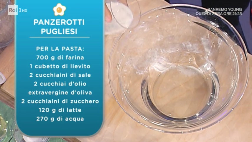 - 700 g farina 0, 1 cubetto di lievito di birra fresco, 2 cucchiaini di sale, 2 cucchiai di olio, 2 cucchiaini di zucchero, 120 g latte, 270 g acqua