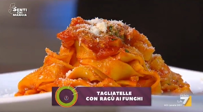 Nel frattempo, in padella, facciamo soffriggere un trito sottile di sedano, carota e cipolla, aggiungendo anche uno spicchio d’aglio schiacciato. Dopo qualche minuto, uniamo i funghi tritati e, successivamente, la passata di pomodoro. Copriamo e lasciamo cuocere a fuoco dolce.