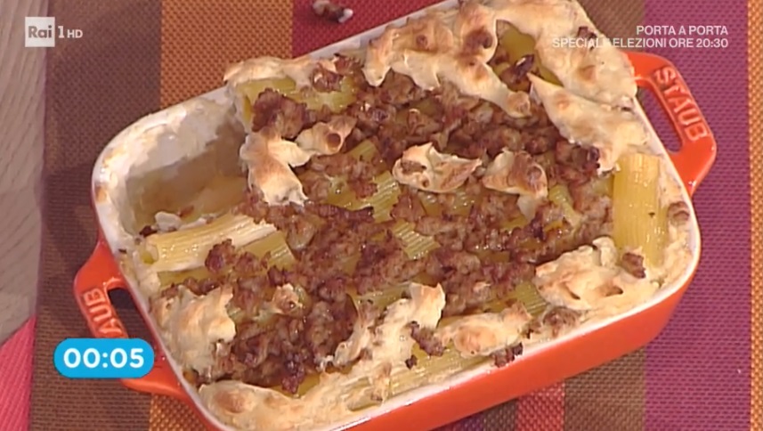 Nel corso della passata edizione de La prova del cuoco, in apertura di puntata, Cristian Bertol ha proposto una sua versione di un piatto goloso e conviviale, preparato con i maccheroni. In particolare, ha preparato il pasticcio di maccheroni al ragù di salsiccia.