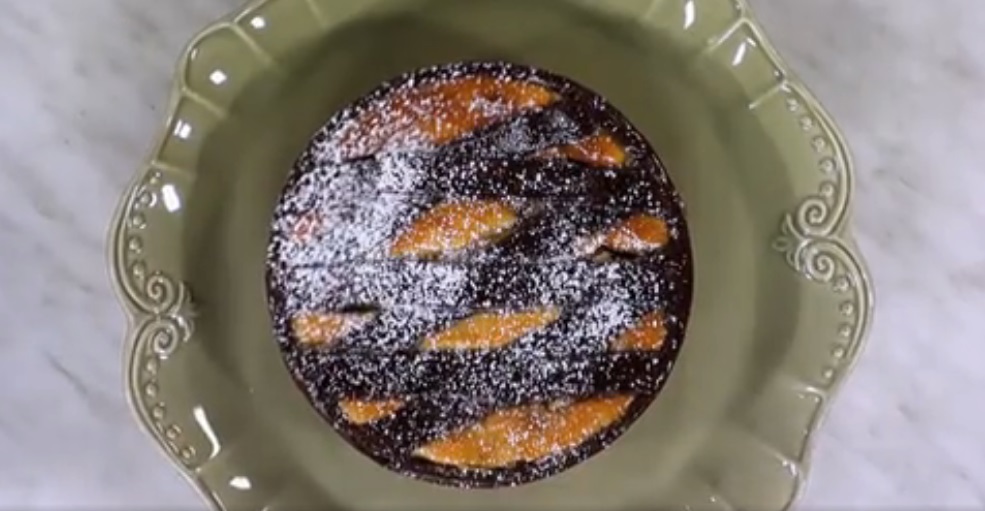 Imburriamo uno stampo da crostata di circa 22 cm di diametro e lo foderiamo con la frolla stesa a 2-3 mm. Versiamo sopra il ripieno e decoriamo con delle striscioline di frolla larghe circa 1 cm. Rivoltiamo verso il centro la pasta eccedente ai bordi, pizzicandola leggermente. Cuociamo in forno preriscaldato a 180° cuocendola un’ora e mezza. Da fredda, la decoriamo con zucchero a velo.