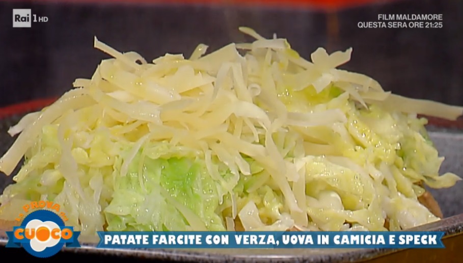 Prendiamo le patate bollite intere e con la buccia. Peliamo solo la parte superiore e le scaviamo delicatamente, creando una sorta di scarpetta. Uniamo la polpa che abbiamo scavato alla verza in padella. Lasciamo insaporire. Farciamo quindi le patate con le verze spadellate. Copriamo con abbondante formaggio di malga grattugiato, un filo d’olio ed inforniamo, in modo da gratinare il tutto: 10 minuti a 180°.