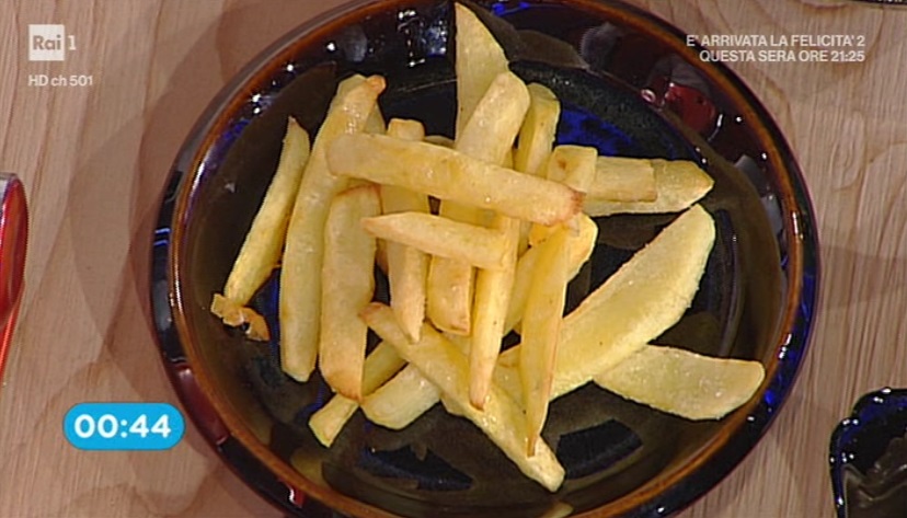 Durante il primo round, in apertura di puntata, Riccardo Facchini e Gian Piero Fava hanno proposto la loro versione delle patatine fritte, spiegandoci come cuocerle al meglio. Ecco le loro patatine fritte.
