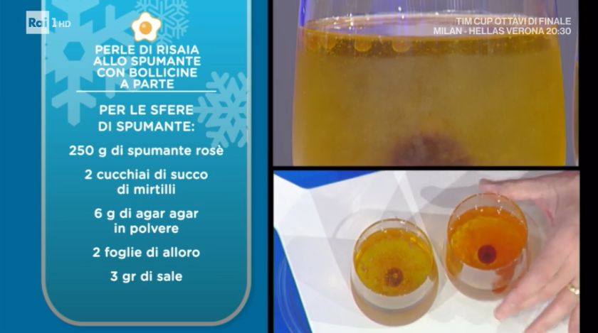Dopo un meritevole secondo piatto, passiamo ad un primo: un risotto. A prepararlo, non può che essere il maestro dei risotti, Sergio Barzetti. Prepariamo le perle di risaia allo spumante con bollicine a parte.