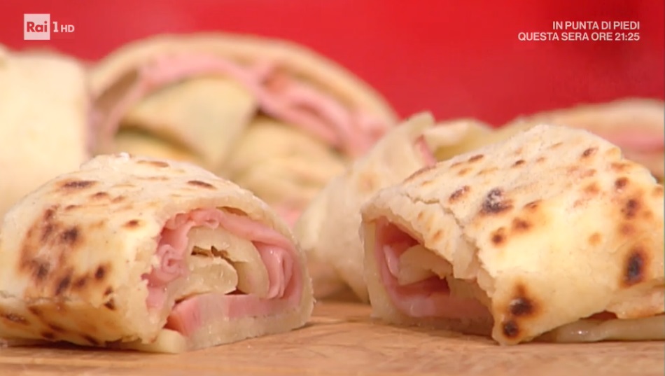 Su metà piadina (spolverata con formaggio grattugiato ed ormai fuso), disponiamo la mortadella affettata ed i carciofini cotti in padella. Arrotoliamo la piadina e la tagliamo a fette spesse 3 cm circa. Otterremo delle girelle.