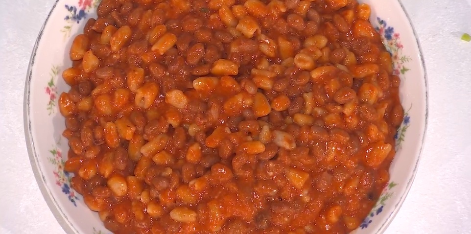 - 500 g fagioli, 100 ml salsa di pomodoro, 1 cucchiaio di concentrato, mezza cipolla, mezzo bicchiere di vino bianco, rosmarino, 30 ml olio, mezzo l brodo, 50 g formaggio grattugiato, olio evo, sale e pepe