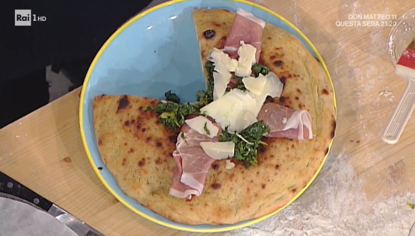 Con l’impasto lievitato, formiamo delle pagnottine di 250 g circa. Lasciamo lievitare nuovamente all’interno di un contenitore ermetico per 8-9 ore. Le pagnottine collasseranno. Stendiamo la prima pagnottina, appiattendo anche i bordi (non dobbiamo avere il cornicione). Disponiamo al centro della provola. Copriamo con la torsella ripassata o i friarielli, mettiamo ancora del provolone piccante e copriamo con l’altro disco di pasta. Sigilliamo per bene i bordi, facendo uscire l’aria all’interno. Posizioniamo su una teglia, spennelliamo con dell’olio evo ed inforniamo a 220° per 18 minuti. Serviamo con fette di prosciutto crudo e scaglie di provolone.