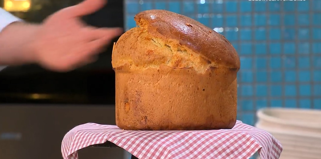 Allarghiamo l’impasto sul banco, leggermente, e lo arrotoliamo su se stesso, dando la forma di una pagnotta. La inseriamo in uno stampo dai bordi alti, simile a quello per il panettone, schiacciando bene l’impasto sul fondo. Copriamo e lasciamo lievitare a temperatura ambiente fino al raddoppio.
