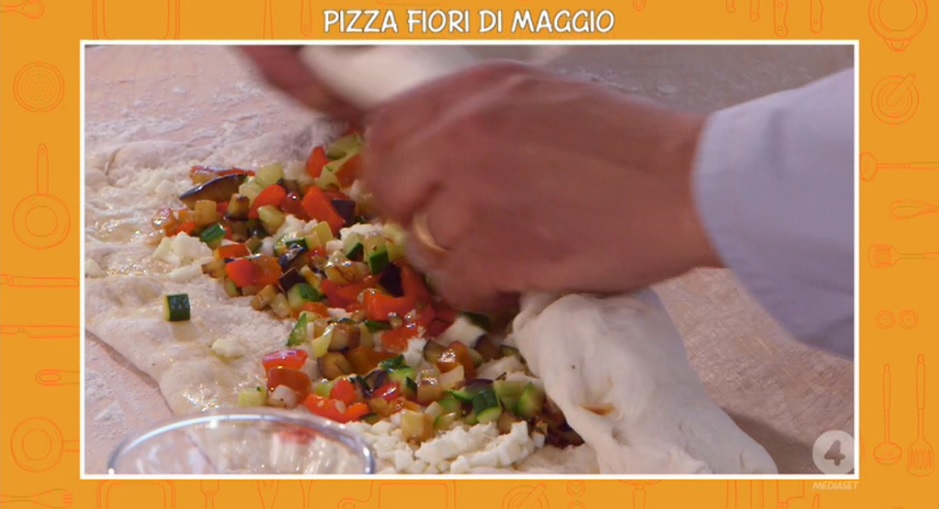 pizza fiori di maggioIl pizzaiolo napoletano Ciro, seguito con attenzione da Anna Moroni, all’interno della puntata odierna di Ricette all’italiana, il programma di Rete4 in onda dal lunedì al sabato prima e dopo il Tg4, ha preparato la pizza fiori di maggio (girelle di pizza).