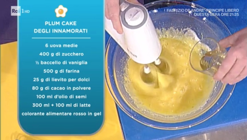 - 6 uova medie, 400 g zucchero, mezzo baccello di vaniglia, 500 g farina, 25 g lievito per dolci, 80 g cacao amaro in polvere, 100 ml olio di semi, 300 ml + 100 ml latte, colorante alimentare rosso