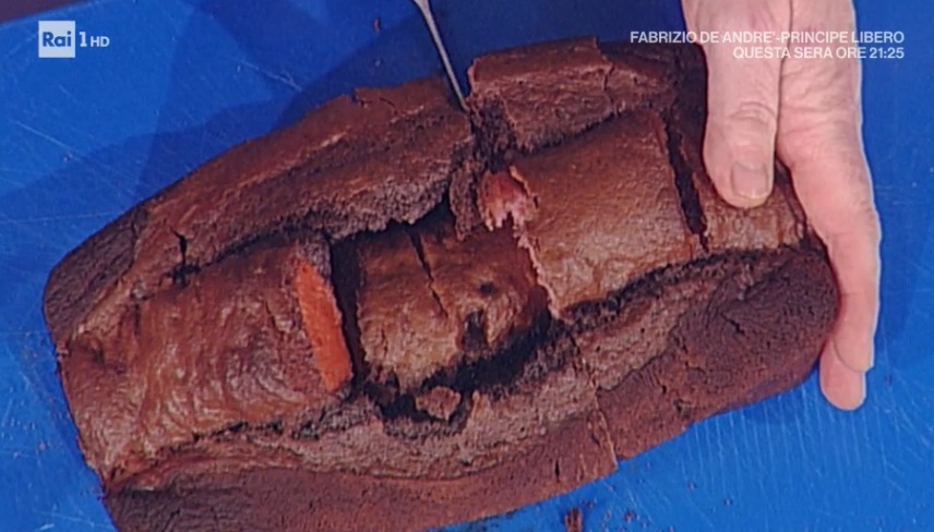Imburriamo e spolveriamo con il cacao uno stampo da plum cake. Mettiamo 1/3 dell’impasto al cacao sul fondo dello stampo. Disponiamo sopra i cuori rossi, in fila e stretti, rivolgendo la punta verso il fondo. Copriamo il tutto con l’impasto al cacao rimasto. Inforniamo a 180° per 40-50 minuti. Meglio fare la prova stecchino…