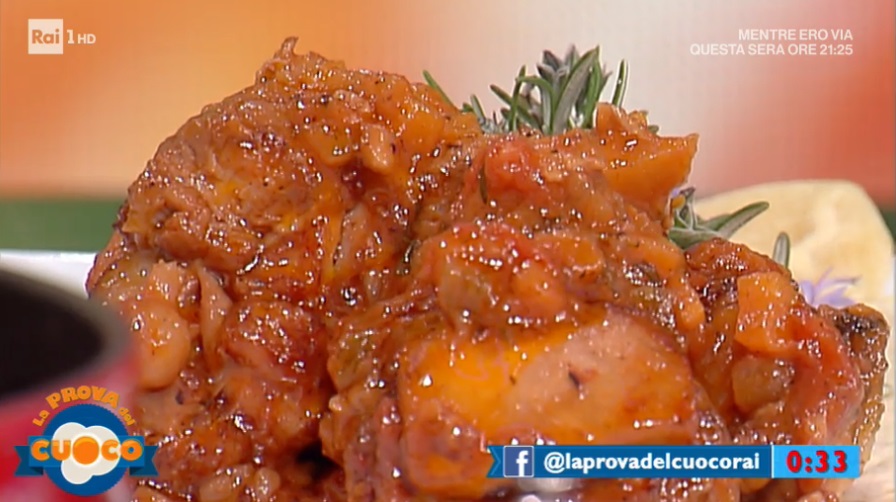 Tritiamo con il coltello il lardo e lo facciamo sciogliere in un tegame con un filo d’olio. Uniamo un trito fine di sedano, carota e cipolla e lasciamo soffriggere. Successivamente, mettiamo il pollo a pezzettoni e profumiamo con timo e rosmarino. Quando il pollo è appena rosolato, uniamo i funghi rinvenuti in acqua, il vino e, successivamente, il pomodoro. Copriamo e lasciamo cuocere a fuoco dolce per 40 minuti.
