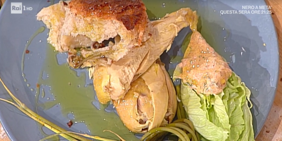 Preriscaldiamo il forno a 160°, quindi inforniamo il pollo in crosta, prendendolo direttamente dal frigorifero. Lasciamo cuocere per 2 ore (1 ora per il forno e 50 minuti ogni kg di carne).