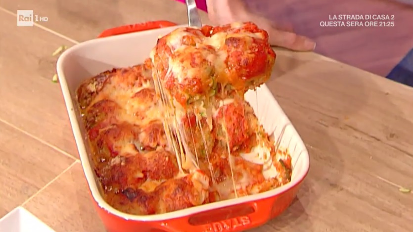 Le disponiamo all’interno di una pirofila, le copriamo con della salsa di pomodoro già pronta ed aromatizzata al basilico, mozzarella tritata e formaggio grattugiato. Cuociamo in forno preriscaldato a 180° per 30 minuti.