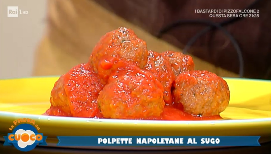 In un tegame, intanto, scaldiamo la passata di pomodoro con olio, aglio e basilico fresco. Quando il sugo è pronto, uniamo le polpette e lasciamo insaporire qualche minuto.