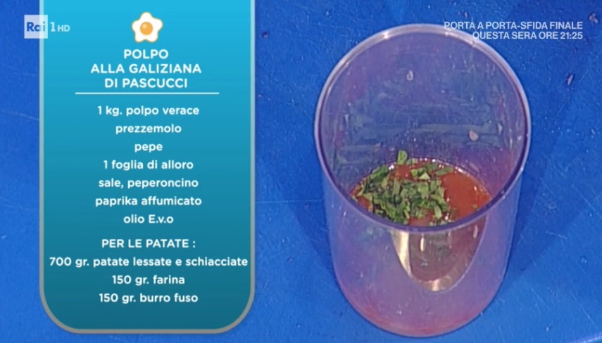 - 1 Kg di polpo verave, prezzemolo, pepe, 1 foglia di alloro, sale, peperoncino, paprika affumicata, olio evo