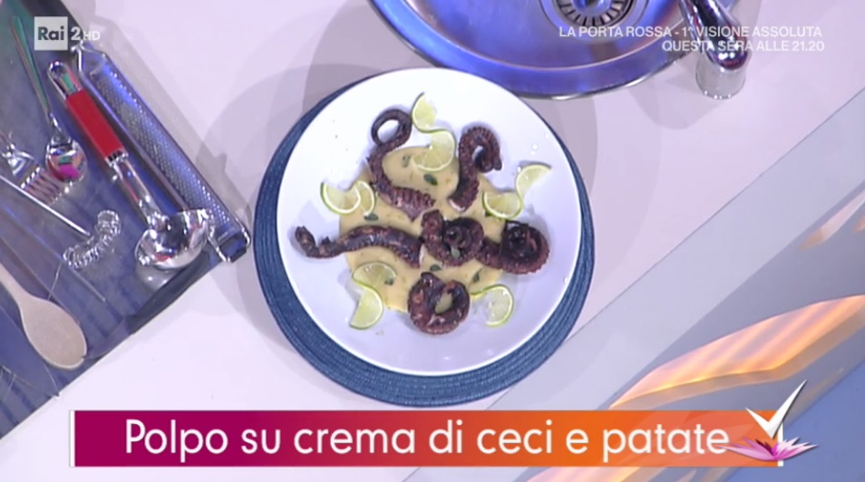 Il tutor Daniele Persegani, protagonista dello spazio dedicato alla cucina, all’interno del programma condotto da Bianca Guaccero su Rai2, Detto Fatto, ha preparato il polpo su crema di ceci e patate. Di seguito ingredienti e procedimento.
