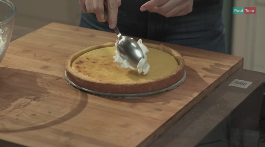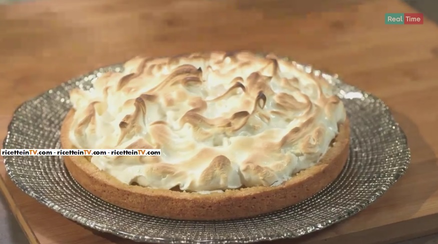 Una volta che la frolla con la crema è pronta e si è raffreddata leggermente, formiamo sopra dei ciuffi di meringa. Rimettiamo in forno in funzione grill alla massima potenza per pochi minuti, finché le punte della meringa si scuriscono leggermente. Facciamo raffreddare in frigorifero e serviamo.