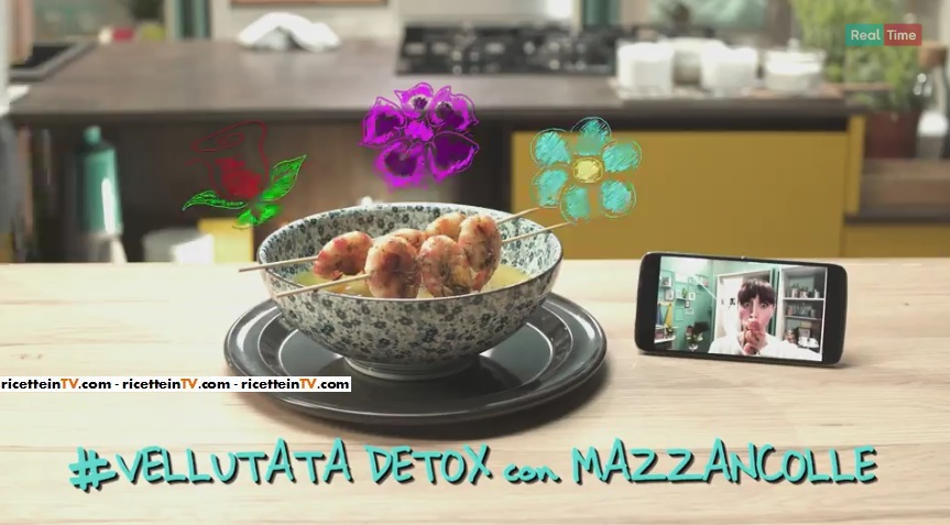 vellutata detox con mazzancolleIn soli 5 minuti, il piatto è pronto e postato, o meglio, #prontoepostato! Ogni giorno, in due appuntamenti (alle 13:45 ed alle 19:05), Benedetta Parodi ci invita ad entrare nella sua cucina, sintonizzandoci su Real Time. Due idee, due piatti golosissimi. Eccone uno: vellutata detox con mazzancolle.