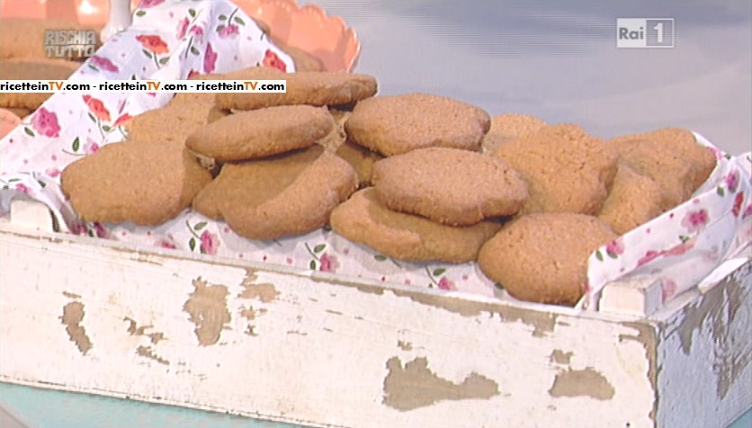 In un mixer, mettiamo i fiocchi di riso e i fiocchi di orzo; tritiamo. Misceliamo la farina doppio 0, la farina integrale di farro, la farina di frumento integrale e la farina di mais; uniamo il trito di cereali in fiocchi e il burro morbido (potete sostituire con lo stesso peso di olio di semi, che metterete a congelare in freezer per ottenere la consistenza del burro). Mettiamo anche lo zucchero di canna, il malto o miele, le uova, un pizzico di sale, il lievito e l’ammoniaca (un lievito). Impastiamo per bene, fino ad ottenere un panetto compatto ed omogeneo. Dividiamo in panetti, dando la forma di un salame. Lasciamo rapprendere in frigorifero; tagliamo a fette e, se vogliamo, diamo la forma che vogliamo. Devono essere un po’ spessi. Inforniamo a 180° per 15-18 minuti: devono essere dorati.