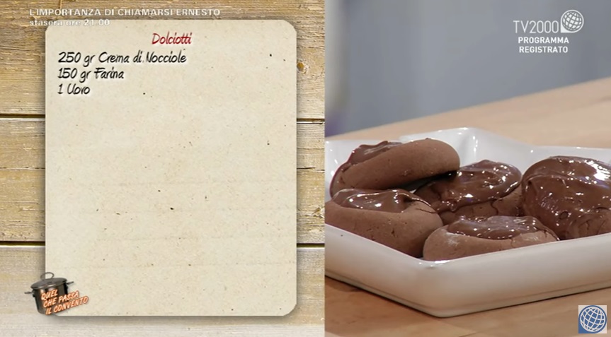 biscotti dolciottiAll’interno di Quel che passa il convento, il programma mattutino di Tv2000 (dal lunedì al venerdì alle 11:00) dedicato alla cucina semplice, ‘di casa’, è stata proposta la ricetta dei biscotti dolciotti. Ecco ingredienti e procedimento.