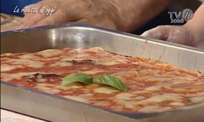 Stendiamo l’impasto lievitato all’interno di una teglia ben unta, aiutandoci con la semola. Distribuiamo sopra la passata di pomodoro condita precedentemente con sale, pepe e basilico. Finiamo con un filo d’olio e cuociamo in forno preriscaldato a 220 °C per 8 minuti. Distribuiamo sopra la mozzarella a dadini e cuociamo ancora per 20 minuti circa.