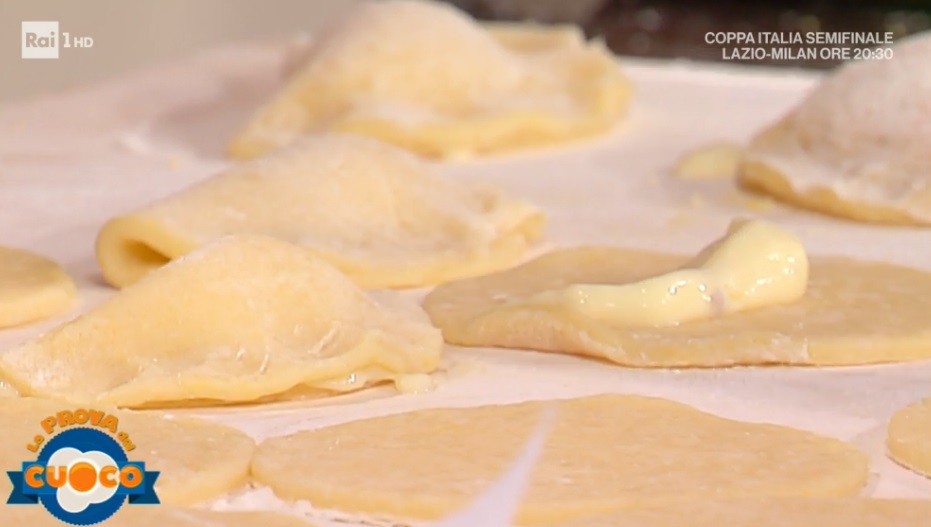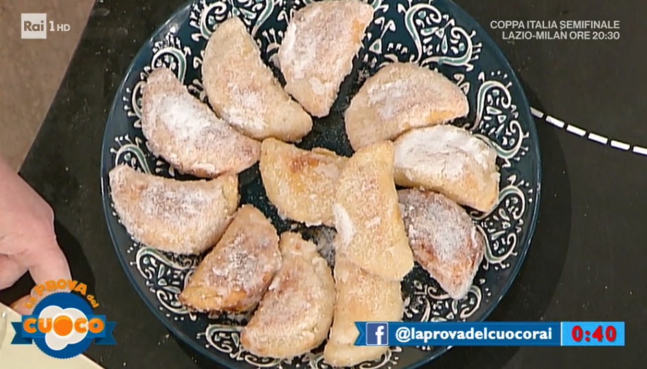 Al centro di ogni disco di frolla, mettiamo un cucchiaio di crema fredda. Richiudiamo a mezzaluna, sigillando per bene i bordi. Lasciamo riposare per mezz’ora in frigorifero. Friggiamo in abbondante strutto (o olio) bel caldo fino a leggera doratura. Scoliamo su carta assorbente e passiamo nella bagna (acqua, zucchero, chiodi di garofano, cannella e noce moscata) e nello zucchero semolato.