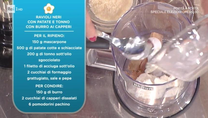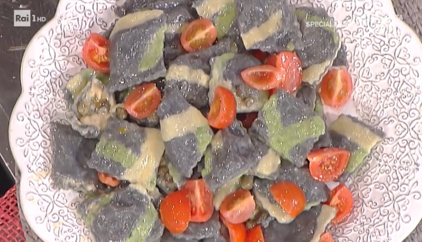 Inizio di settimana all’insegna del buonumore, con l’esplosiva Alessandra Spisni. La sfoglina bolognese impugna il suo Luiso e ci promette un primo piatto golosissimo. Ecco i ravioli neri con patate tonno e burro ai capperi.