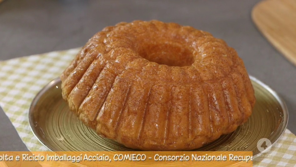In una ciotola, lavoriamo il burro morbido a tocchetti con lo zucchero. Ottenuta una crema omogenea, uniamo le uova sbattute a temperatura ambiente. Lavoriamo con le mani (o con l’impastatrice, con il gancio), fino a rendere omogeneo il composto. Sbricioliamo il lievito di birra fresco e lavoriamo ancora fino a scioglierlo. A questo punto, aggiungiamo la farina ed un pizzico di sale. Lavoriamo fino ad ottenere un composto omogeneo e liscio. Copriamo l’impasto con la pellicola e lasciamo lievitare fino a triplicare il volume iniziale. Una volta lievitato l’impasto, lo lavoriamo ancora qualche istante con le mani e lo trasferiamo all’interno dello stampo da savarin ben imburrato. Lasciamo lievitare nuovamente finchè l’impasto arriva ad 1 cm dal bordo dello stampo.