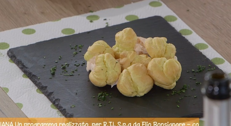 La cuoca casalinga Anna Moroni, all’interno della puntata odierna della nuova stagione di Ricette all’italiana, il programma di Rete4 condotto da Davide Mengacci, in onda dal lunedì al sabato prima e dopo il Tg4, ha preparato i bignè al salmone affumicato.