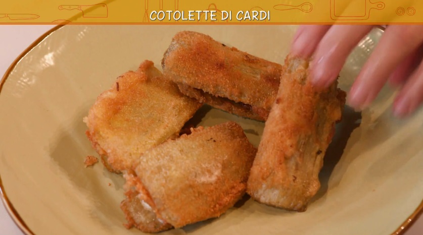 cardi alla parmigianaLa cuoca casalinga Anna Moroni, reduce da una pluriennale esperienza ai fornelli de La prova del cuoco, all’interno della puntata odierna di Ricette all’italiana, il programma di Rete4 condotto da Davide Mengacci, ha preparato cardi alla parmigiana e cotolette di cardi.