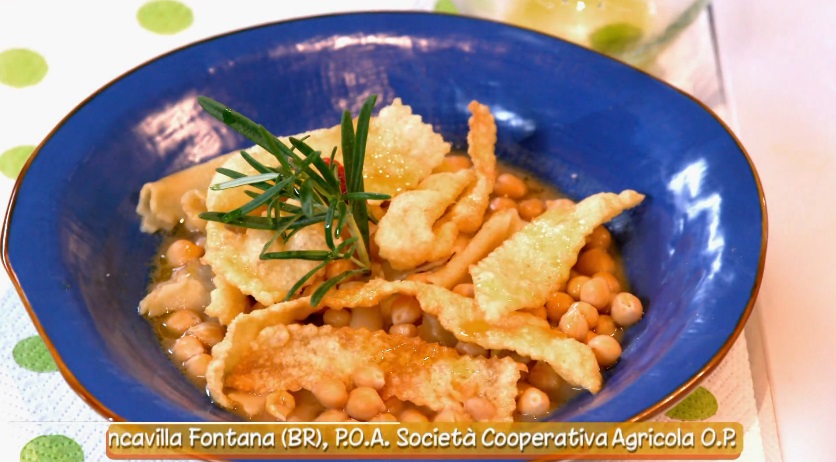ciceri e triaLa cuoca casalinga Anna Moroni, reduce da una pluriennale esperienza ai fornelli de La prova del cuoco, all’interno della puntata odierna di Ricette all’italiana, il programma di Rete4 condotto da Davide Mengacci, ha preparato due piatti, ciceri e tria ed una salsa di ceci.