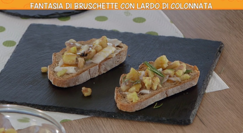 fantasia di bruschetteLa cuoca casalinga Anna Moroni, all’interno della puntata odierna della nuova stagione di Ricette all’italiana, il programma di Rete4 condotto da Davide Mengacci, in onda dal lunedì al sabato prima e dopo il Tg4, ha preparato la fantasia di bruschette