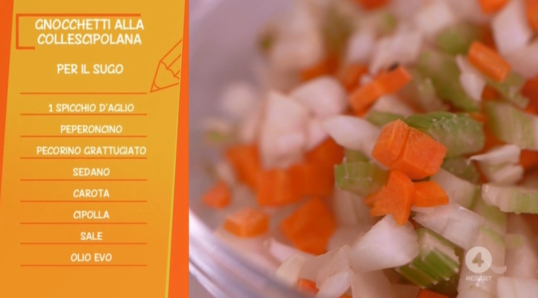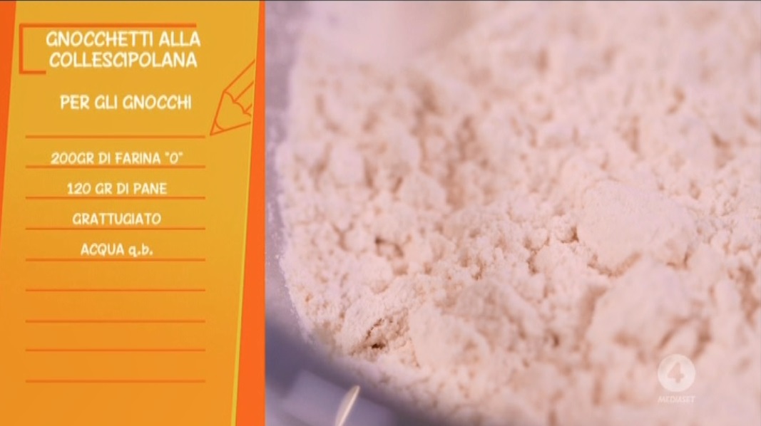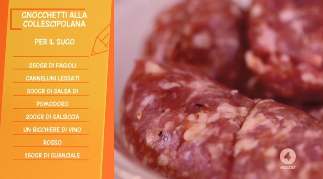 La cuoca casalinga Anna Moroni, all’interno della puntata odierna di Ricette all’italiana, il programma di Rete4 condotto da Davide Mengacci, in onda dal lunedì al sabato prima e dopo il Tg4, ha preparato gli gnocchetti alla collescipolana.
