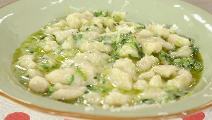Per gli gnocchi, in un pentolino, portiamo a bollore l’acqua con l’olio evo ed un pizzico di sale. Quando bolle, uniamo la farina tutta d’un colpo e mescoliamo energicamente, finchè il composto appare omogeneo e si stacca dalle pareti. Togliamo dal fuoco e trasferiamo su un piano infarinato. Formiamo dei salsicciotti e li tagliamo a tocchetti. A questo punto, li pressiamo sul piano con un dito, o li passiamo su una forchetta capovolta o sull’apposito riga gnocchi, quindi diamo la forma tipica degli gnocchi. Li cuociamo in abbondante acqua bollente e salata. Quando vengono a galla, lasciamo bollire per un minuto, li scoliamo e li ripassiamo in padella con il condimento, parte del formaggio grattugiato ed un mestolo di acqua di cottura. Serviamo con un’altra spolverata di formaggio grattugiato.