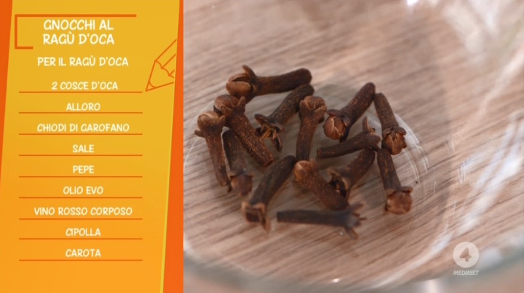 - per il ragù d’oca: 2 cosce d’oca, alloro, chiodi di garofano, sale, pepe, olio evo, vino rosso corposo, cipolla, carota, 1 spicchio di aglio, 300 g di passata di pomodoro, 2 cucchiai di concentrato di pomodoro