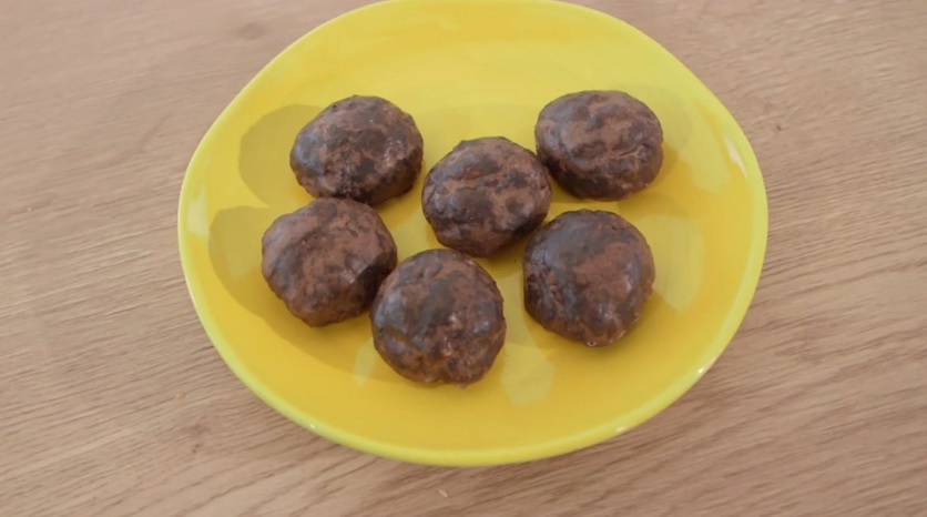 Ricaviamo dall’impasto delle palline grandi come noci e le disponiamo su una teglia con carta forno. Cuociamo in forno caldo a 180° per 30 minuti. Li lasciamo raffreddare e li immergiamo in una glassa lucida al cioccolato (facciamo bollire acqua, zucchero a velo e cacao amaro). Li lasciamo asciugare.