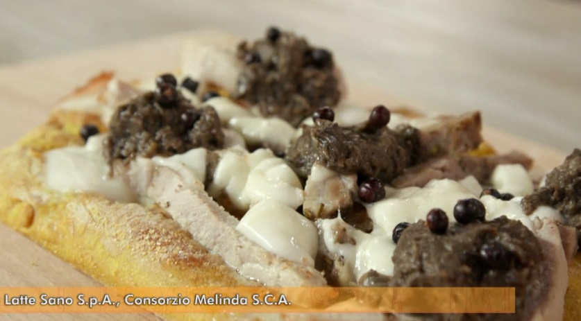 - Condimento: 250 g misto funghi, 200 g porchetta, 150 g mozzarella, bacche di ginepro