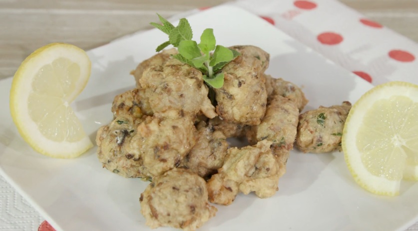 Scaldiamo un pentolino d’olio profondo. Con il composto ottenuto formiamo delle polpettine, aiutandoci con due cucchiai, e le tuffiamo nell’olio ben caldo. Facciamo friggere fino a doratura. Scoliamo su carta assorbente e serviamo. Serviamo con fettine di limone.