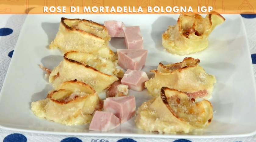 Disponiamo la sfoglia di pasta all’uovo precedentemente sbollentata su un foglio di carta forno: dev’essere un rettangolo piuttosto grande. Spalmiamo sopra un po’ di besciamella e copriamo quest’ultima con la mortadella affettata ed il groviera a fettine. Arrotoliamo la sfoglia su se stessa, dal lato lungo. Tagliamo il rotolone ottenuto a fette spesse circa 3 cm. Disponiamo quest’ultime all’interno di una teglia, rivolgendo il taglio verso l’alto, come fosse una rosa. Su ogni rosa mettiamo qualche cubetto di mozzarella e copriamo con un po’ di besciamella ed abbondante formaggio grattugiato. Cuociamo in forno a 180° per 10 minuti circa, devono dorare leggermente.