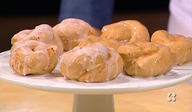 Lo chef Fabio Campoli, all’interno della puntata odierna di Ricette all’italiana, il programma di Rete4 condotto da Davide Mengacci, ha preparato un dolce della tradizione dolciaria nostrana: i taralli glassati.