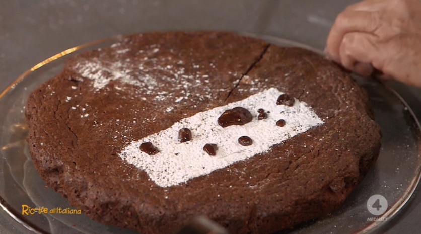 Con una spatola, sbattiamo leggermente i tuorli, quindi uniamo la farina di mandorle (con lo zucchero), la vaniglia e l’essenza di mandorle amare. Aggiungiamo la miscela di burro e cioccolato, che non dev’essere troppo calda. Lavoriamo per bene, quindi incorporiamo gli albumi a neve, mescolando delicatamente. Trasferiamo l’impasto ottenuto all’interno di una tortiera imburrata ed infarinata (senza glutine, se per celiaci). Cuociamo in forno preriscaldato e statico a 180° per 30 minuti: vale la prova stecchino! Lasciamo raffreddare prima di sformarla.