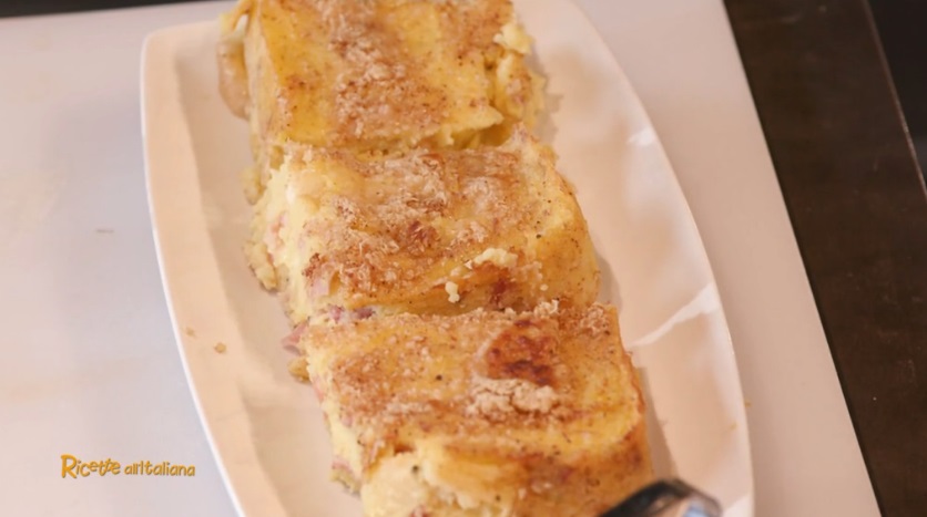 - patate lesse, formaggio grattugiato, 2 uova, pangrattato, burro, 150 g fiordilatte, latte, mortadella, prosciutto cotto